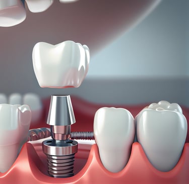 İmplant eksik dişlerin tedavisinde kullanılan ve çene kemiğinin içine yerleştirilen titanyumdan yapılmış vidalardır. Bu vidaların üzerine diş protezi yerleştirilir. İmplant tedavisinin diğer tedavilere avantajı komşu dişlere zarar verilmez. Yani komşu dişlerin kesilmesi gerekmez. İmplant diş kök görevi görür ve doğal diş gibi rahatlıkla yemek yiyebilir, konuşabilir ve gülebilirsiniz. Diş implantı cerrahisi, diş köklerini metal, vida benzeri direklerle değiştiren ve hasarlı veya eksik dişlerin yerine gerçek dişlere çok benzeyen ve işlev gören yapay dişler yerleştiren bir cerrahi süreci de içerir. Diş implantı, iyi oturmayan protez veya köprü dişlere hoş bir alternatif sunabilir ve bu nedenle geleneksel köprü gibi yöntemlere göre daha fazla tercih edilir.